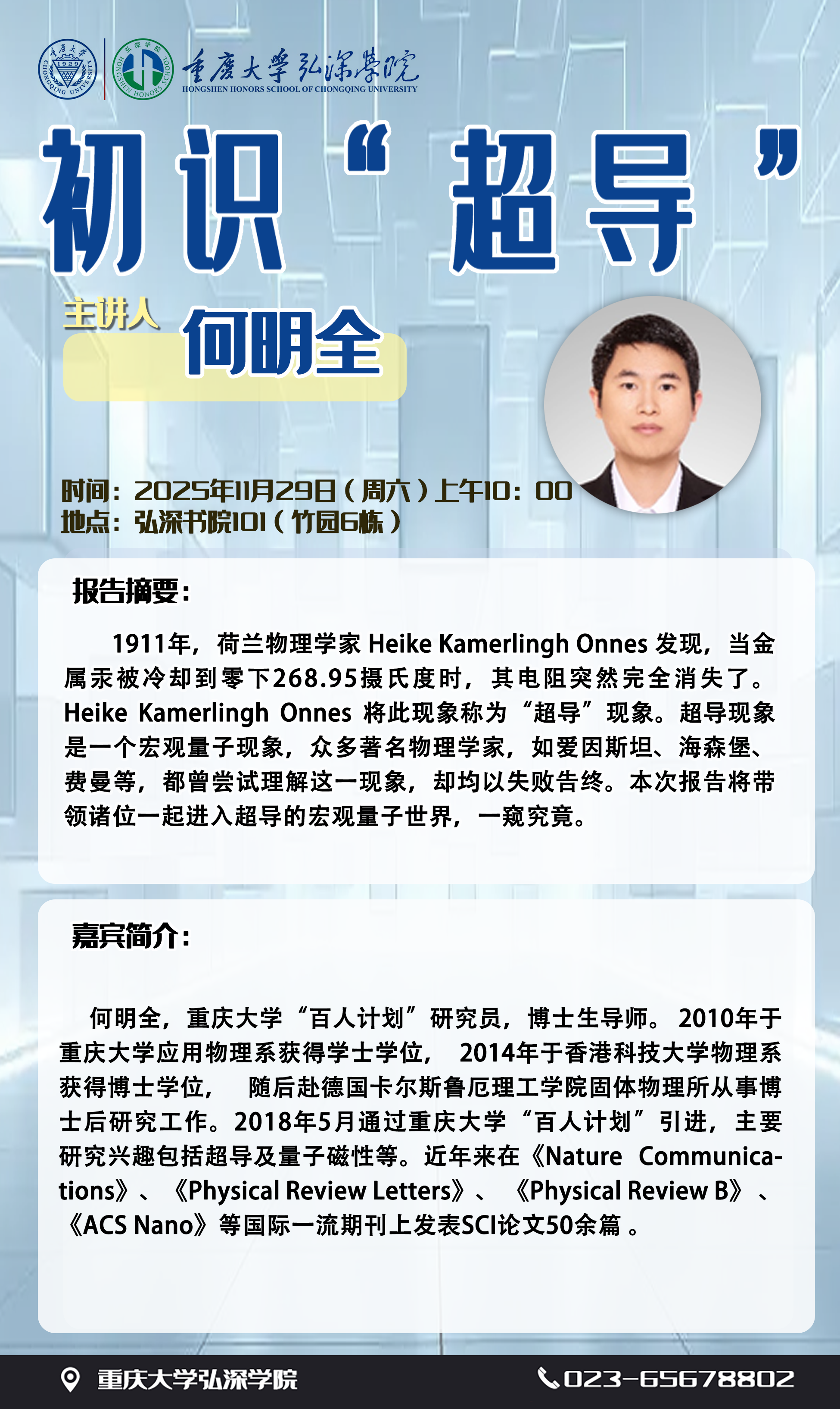 关于重庆大学物理学院何明全教授到弘深书院进行讲座的通知