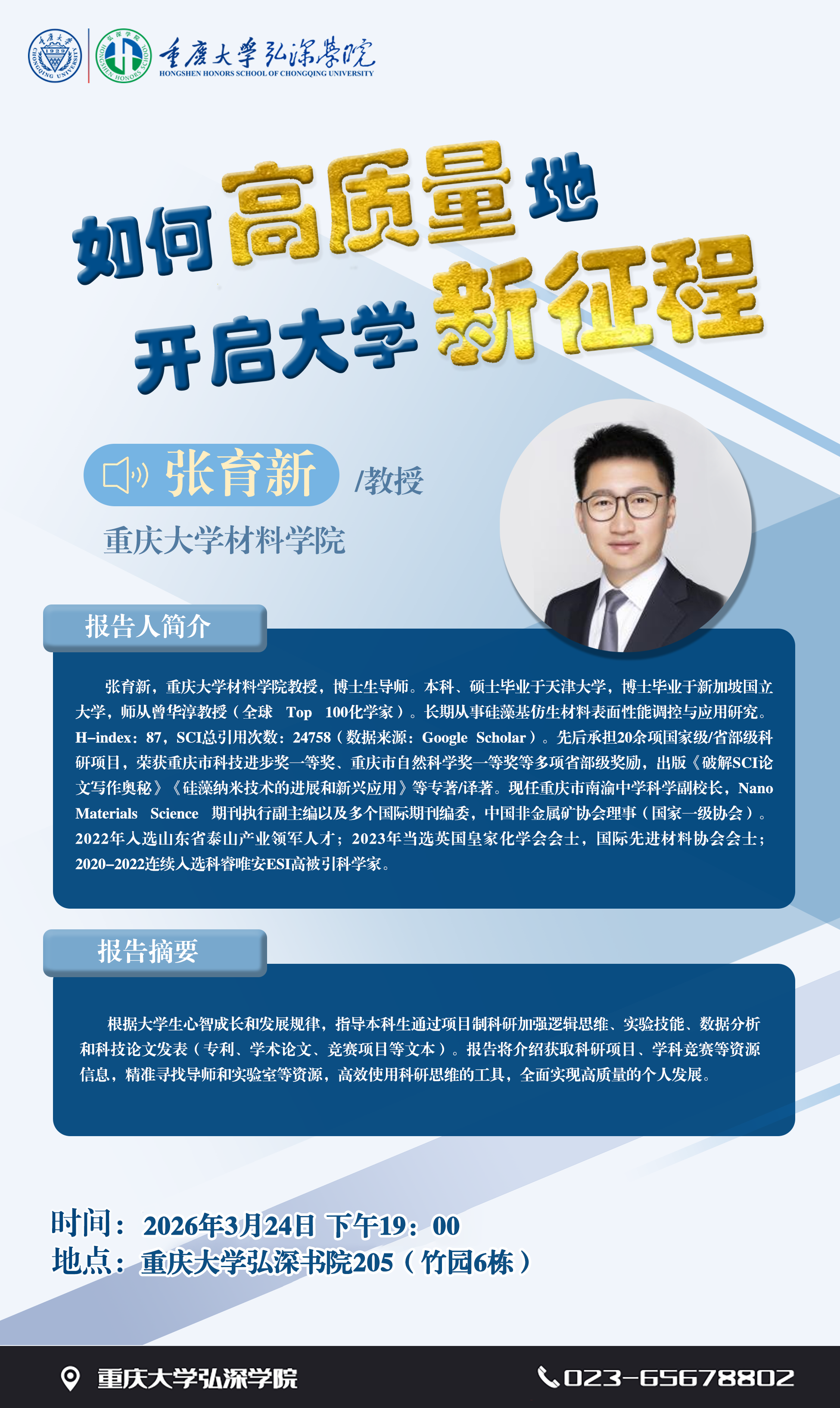 关于材料学院张育新教授到弘深书院举行讲座的通知