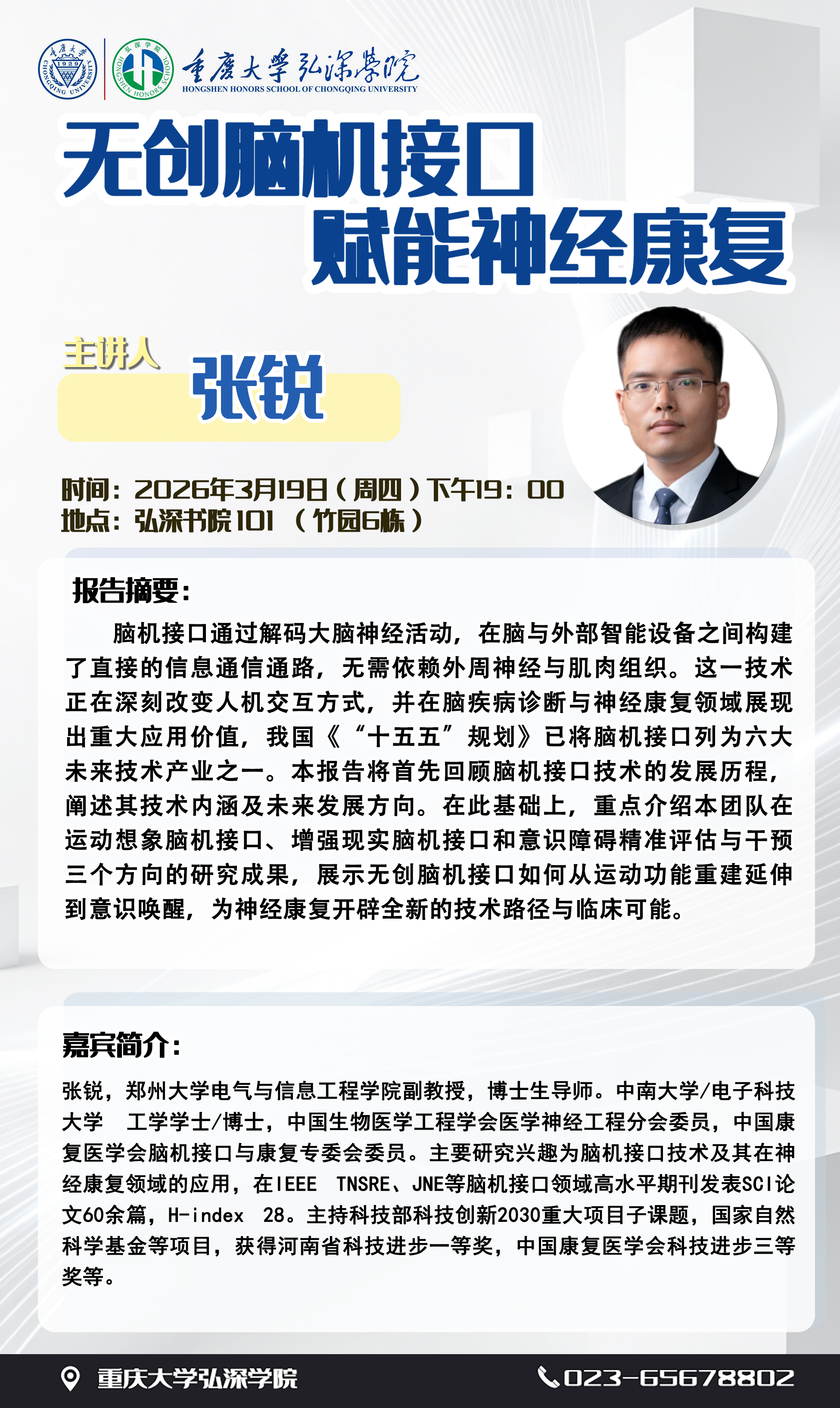 关于郑州大学张锐教授到弘深书院举行讲座的通知