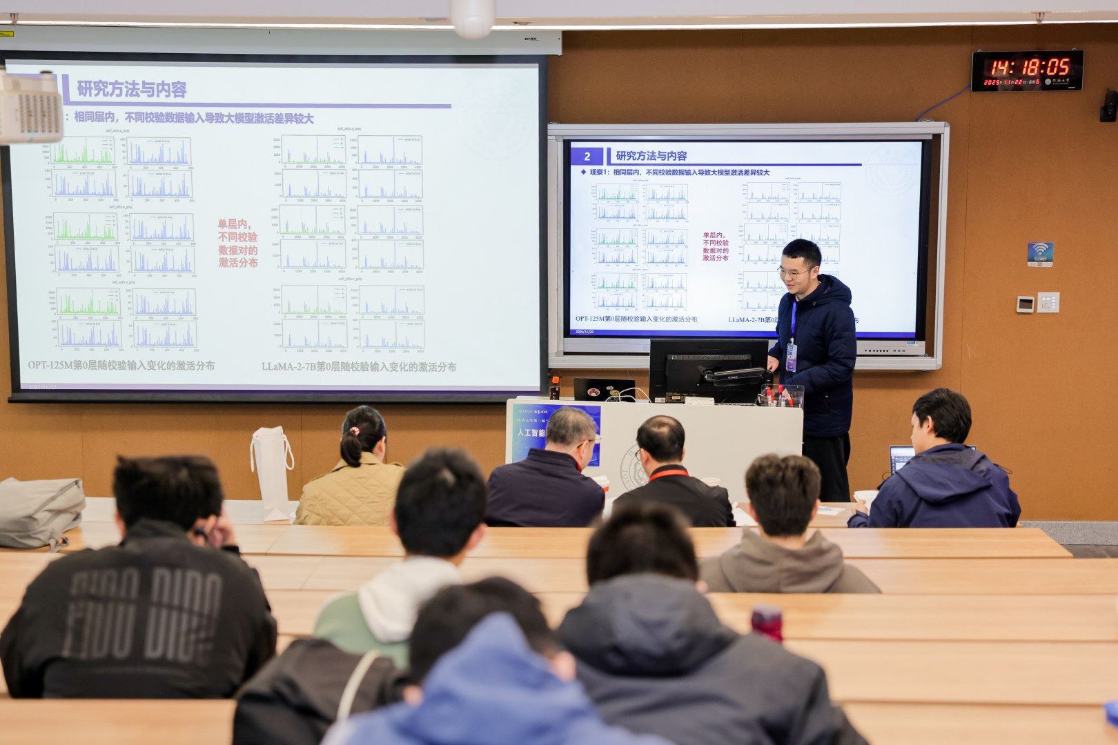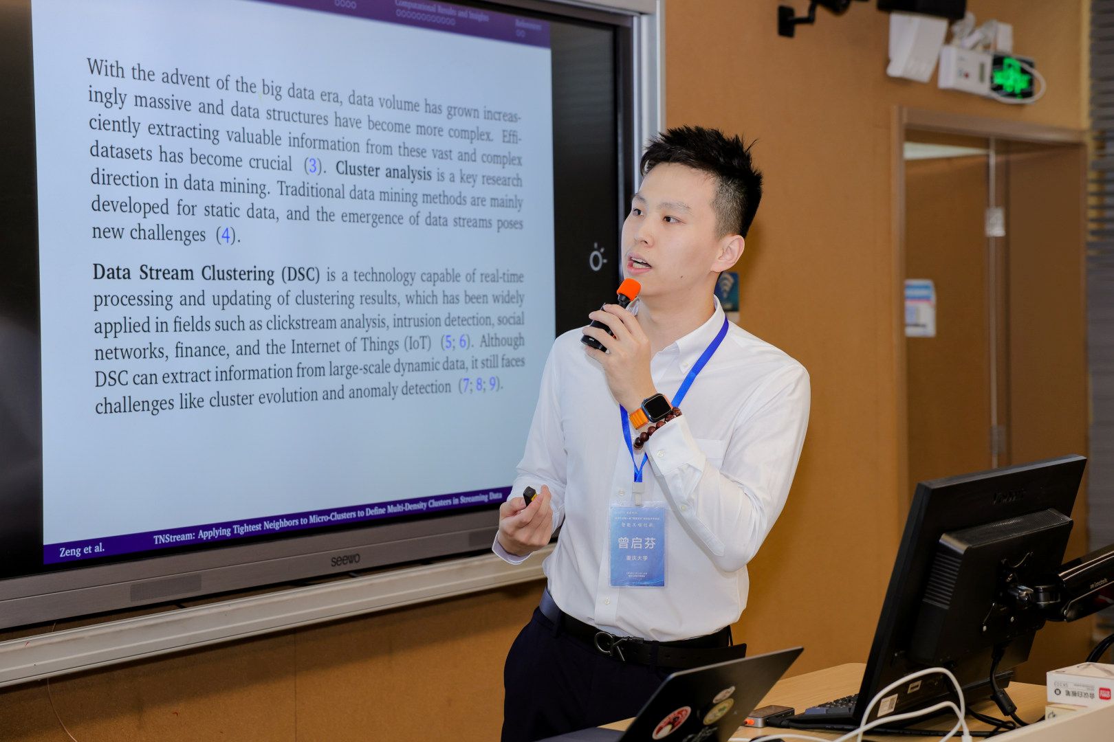 在下午的分论坛活动中,学术交流氛围热烈。在 “人工智能前沿与应用”分论坛中,弘深学院2022级数学拔尖班曾启芬带来了题为《TNStream: Applying Tightest Neighbors to Micro - Clusters to Define Multi - Density Clusters in Streaming Data》的精彩汇报。他深入浅出地介绍了该研究在数据流聚类领域的创新应用,展示了扎实的专业知识和出色的研究能力。弘深学院2022级计算机拔尖班白玉衡则以《D²Prune : Sparsifying Large Language Models via Dual Taylor Expansion and Attention Distribution Awareness》为题,分享了在大语言模型稀疏化方面的前沿研究成果。