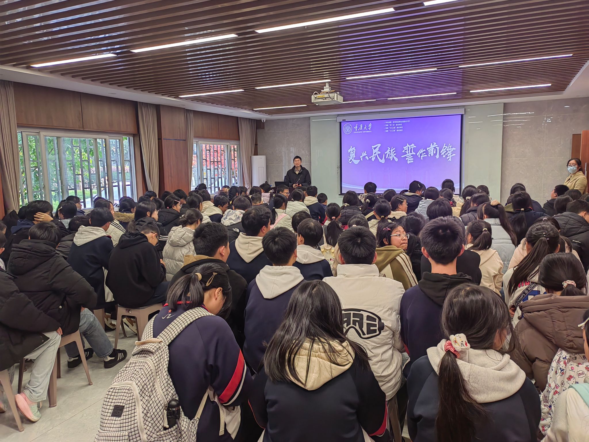 参观结束后,师生们前往弘深书院,聆听由重庆大学物理学院何明全教授带来的科普专题讲座。讲座中,何明全结合自身科研经历,以“物理世界的奇妙现象”为主题,通过趣味实验演示和经典案例分析,将复杂的物理知识融入生活场景,激发了同学们对自然科学的浓厚兴趣。在互动交流环节,同学们踊跃举手,围绕学习困惑、科研方向等问题向何明全请教,何明全耐心细致的解答为大家拨开了知识迷雾。