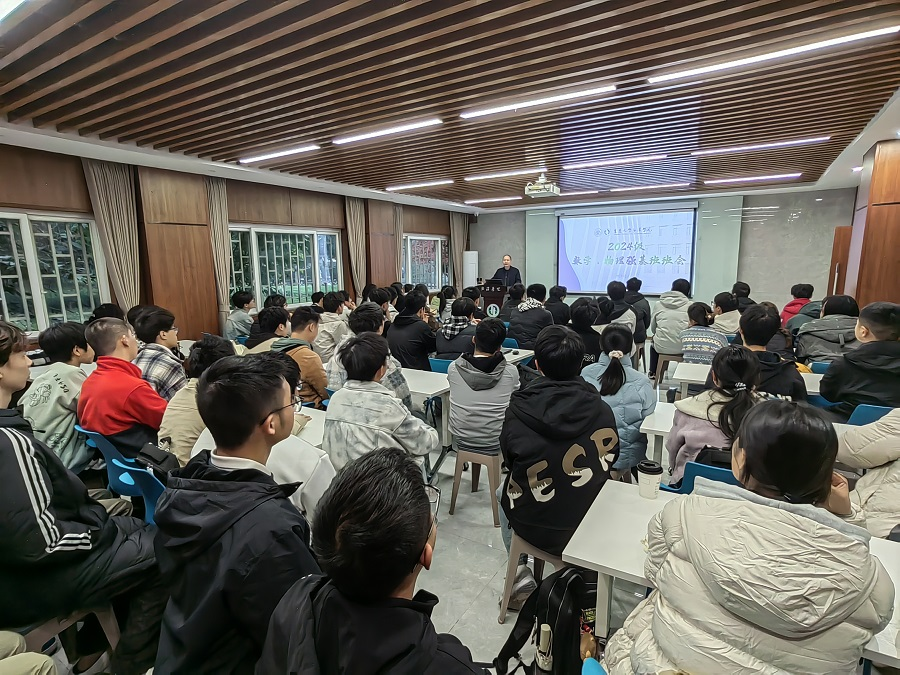 2025年12月2日,2024级数学与物理强基班专题班会在书院101室举行。弘深学院副院长钟将、教学办主任刘瑶担任本次班会主讲人,班会围绕强基计划本研衔接转段政策展开深度解读,为强基学子厘清发展路径,破除迷茫心态,鼓励同学们以积极进取的姿态投身基础学科学习与科研实践。
