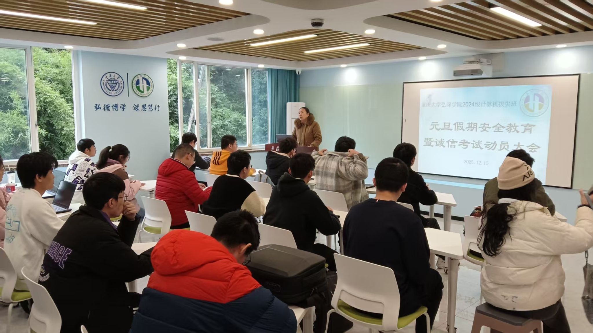 为筑牢学生诚信应试思想防线,织密校园安全防护网络,2025年12月中旬起,弘深学院以“诚信应考守初心,安全护航伴成长”为主题,分年级陆续召开诚信考试暨安全主题教育动员大会。此次系列大会由各年级辅导员围绕学风建设与安全管理重点内容展开深入动员,实现全院学生教育覆盖无死角。