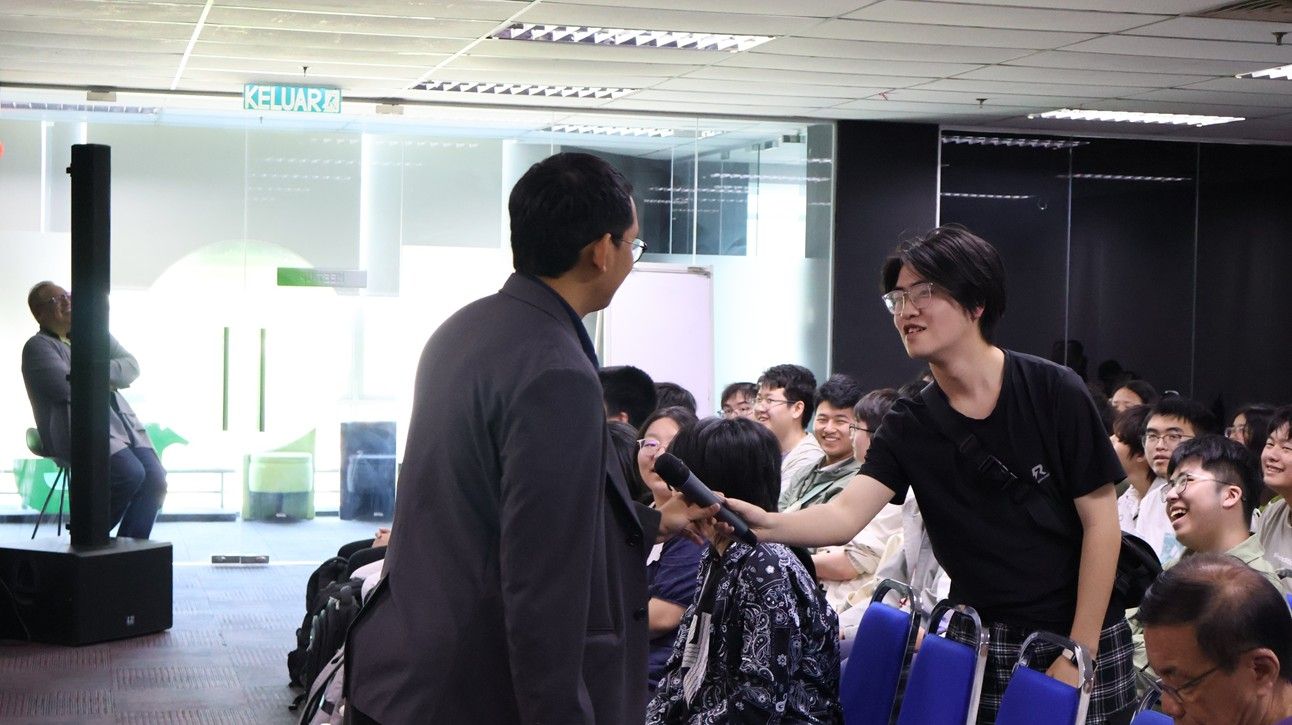 在企业参访环节,同学们走进了Cyber View科技园区,聆听高级经理 Wan Najiy 的专题分享。讲座系统介绍了园区发展规划、智慧城市建设及数字经济生态,通过实际案例展示科技成果从实验室走向产业应用的全过程,使同学们对前沿科技的落地路径与产业生态有了更直观、更深刻的认识,进一步拓宽了专业视野,激发了对数字经济领域学习与实践的热情。