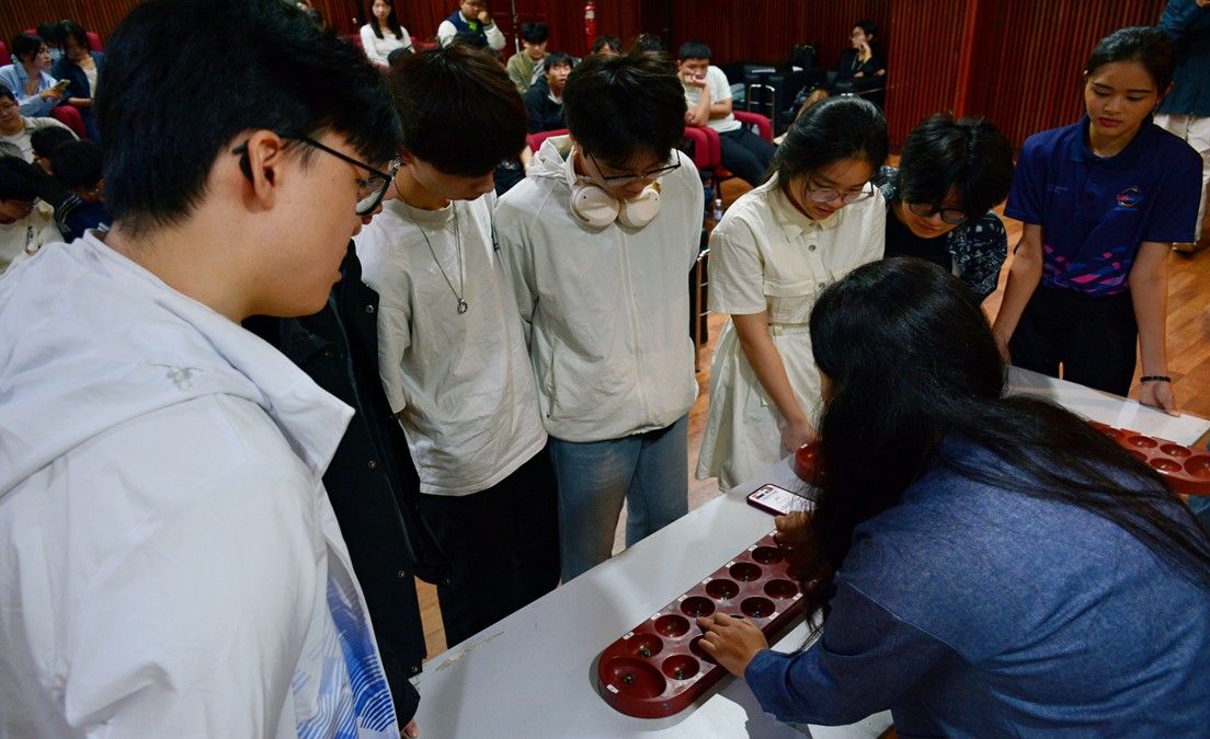 在STEM应用课程中,马来亚大学教授 Mas Sahidayana Mohktar 围绕“数理能力培养”开展实践教学。课程以传统游戏为载体,将数学逻辑与动手实践相结合,引导同学们在互动体验中感知数量关系与思维规律,培养数感与问题分析能力,充分体现了STEM教育注重实践与思维并重的理念。
