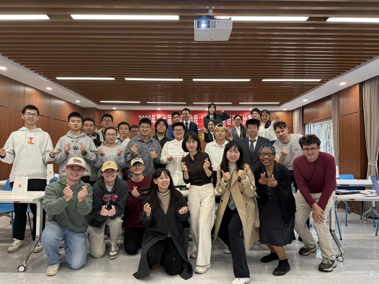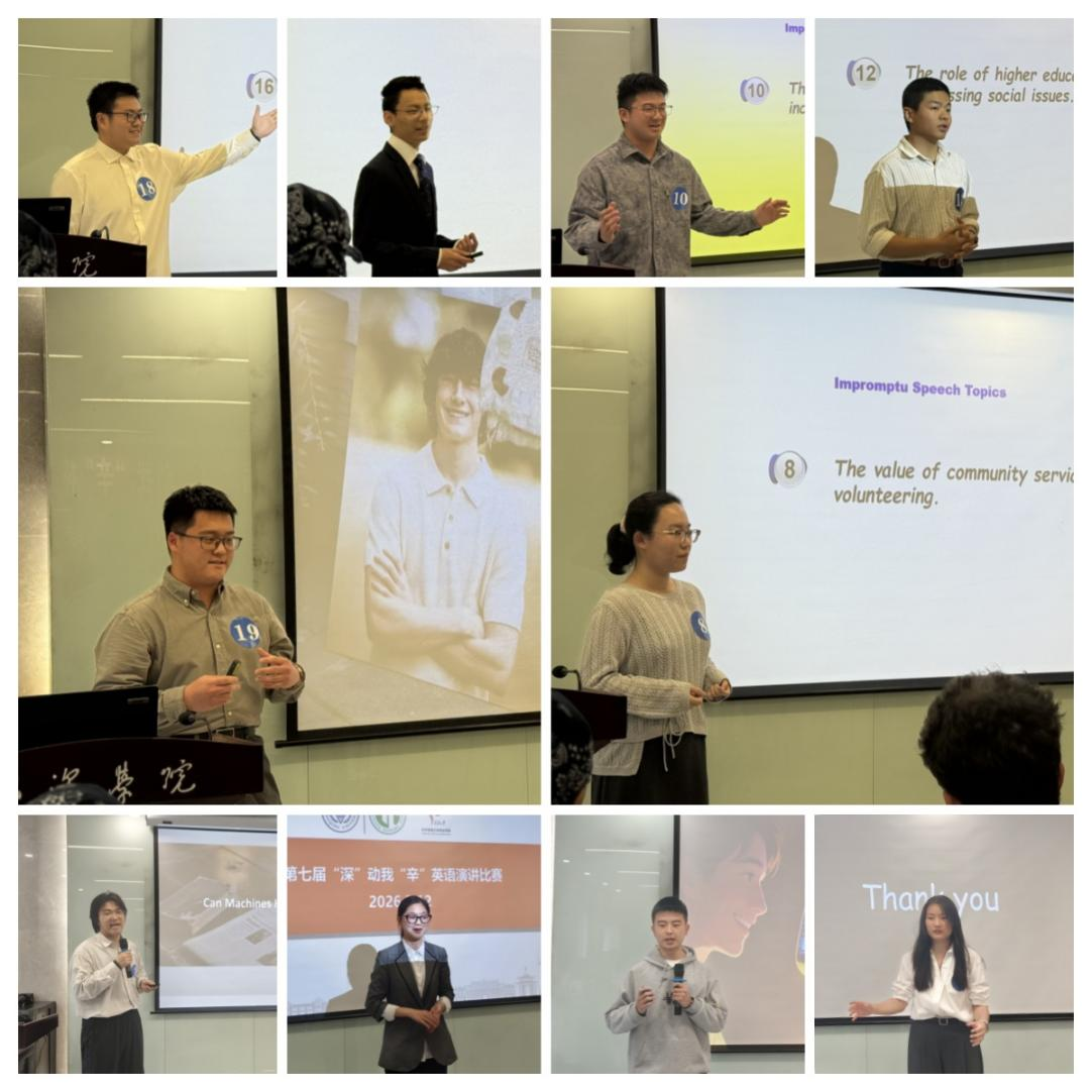2026年3月12日下午,弘深学院与重庆大学-辛辛那提大学联合学院(以下简称“UC联合学院”)在弘深书院101室举办第七届“深”动我“辛”杯英语演讲比赛。本次比赛由外国语学院副教授雷蕾担任主持人,并特别邀请外国语学院外籍教师Jordan、Ann、Patrick组成专业评委团。活动还邀请到辛辛那提大学交换生Peter、Adam、Marceau莅临现场观摩交流,进一步彰显了活动的国际化特色。